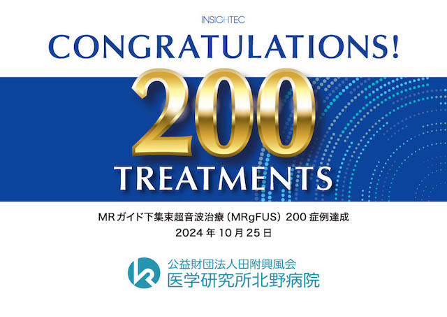 公益財団法人田附興風会 医学研究所北野病院は、2024年10月25日に超音波を活用する治療において、200症例を達成しました。